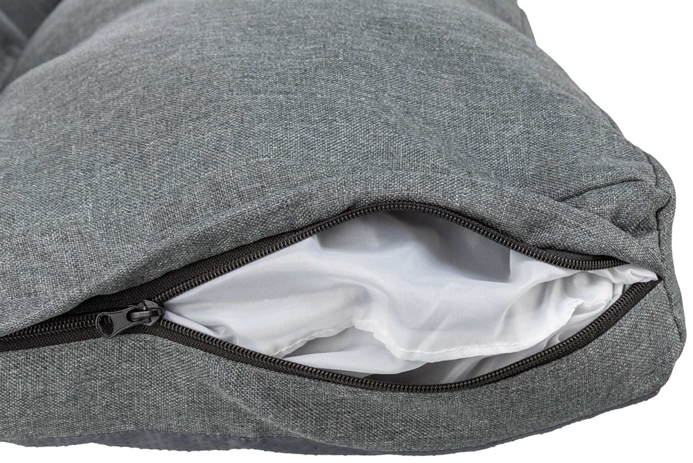 Ge din hund en rymlig och bekväm viloplats med denna slitstarka kudde. Den tåliga vävda ytan kombineras med mjuk fyllning som ger skön komfort under hela dagen. Den vattenavvisande funktionen gör kudden praktisk i vardagen, medan den avtagbara klädseln gör den enkel att hålla fräsch.