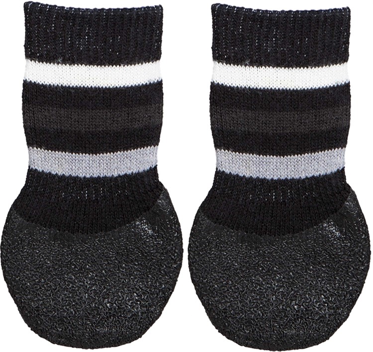 Dessa halksäkra hundsockor ger din hund bättre grepp på hala golv som parkett, laminat och klinker. Den robusta och generösa halkskyddsbeläggningen runt hela sockan ger stabilt fäste även om den skulle vrida sig. Särskilt lämpliga för äldre hundar eller hundar med nedsatt rörlighet som behöver extra stöd i vardagen. Sockorna kan även användas för att skydda mindre sår och bandage från smuts samt minska risken att hunden slickar på skadan.