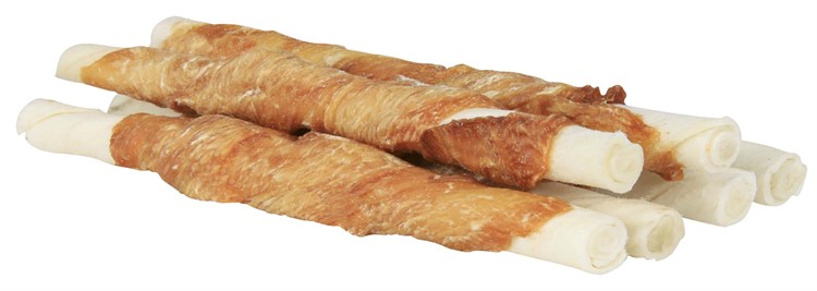 råhud, kycklingkött (30 %), glycerin, sorbitol, majsstärkelse, sojaprotein, jordnötsprotein, mineraler, kitosan | glutenfritt  | Förvaras svalt och torrt.