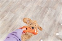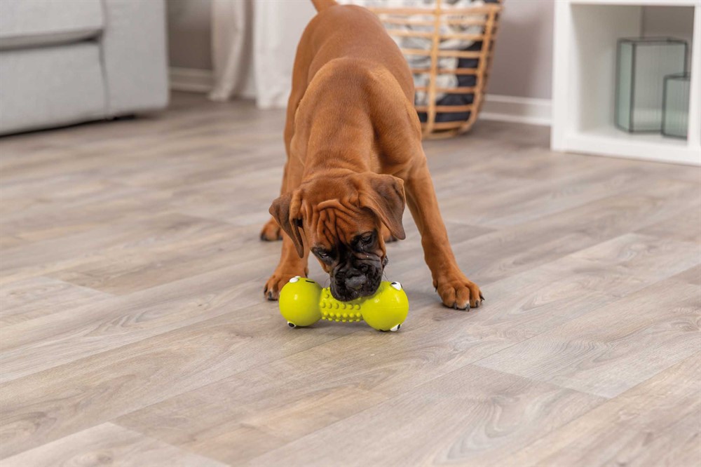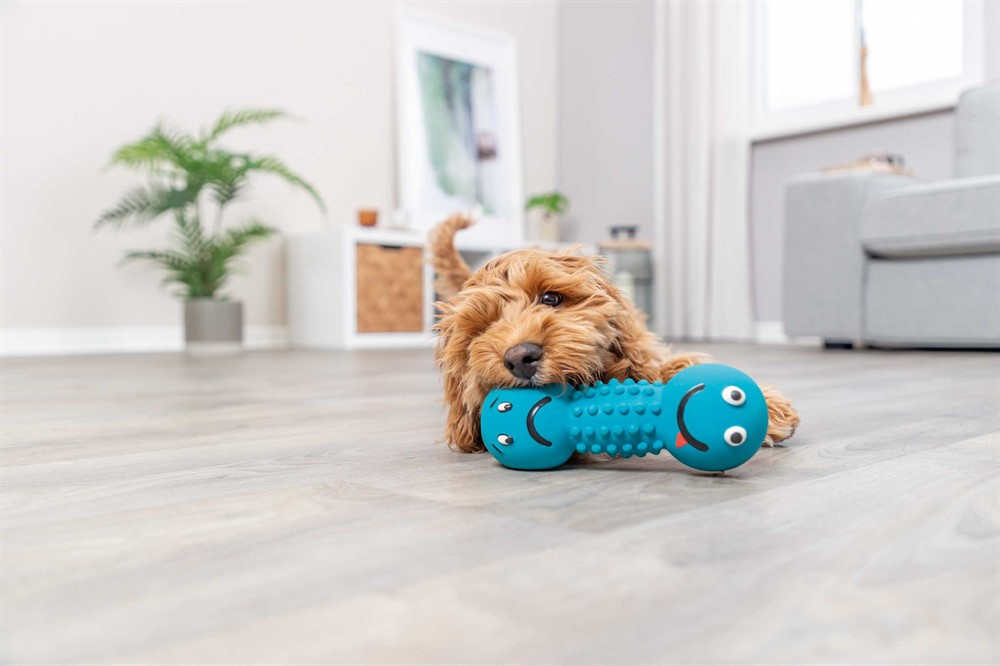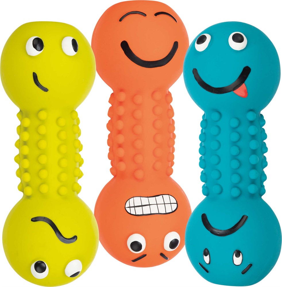 Denna apportformade hundleksak är tillverkad i mjuk latex och passar perfekt för både lek och tugg. Den avlånga formen gör den enkel för hunden att greppa, bära och skaka, vilket stimulerar den naturliga lekinstinkten. Den lekfulla designen med olika motiv gör leksaken extra tilltalande och skapar variation i vardagens aktivering. Passar bra för både självständig lek och gemensamma busstunder. Produkten levereras med olika motiv, för större variation.