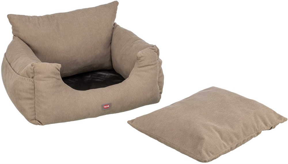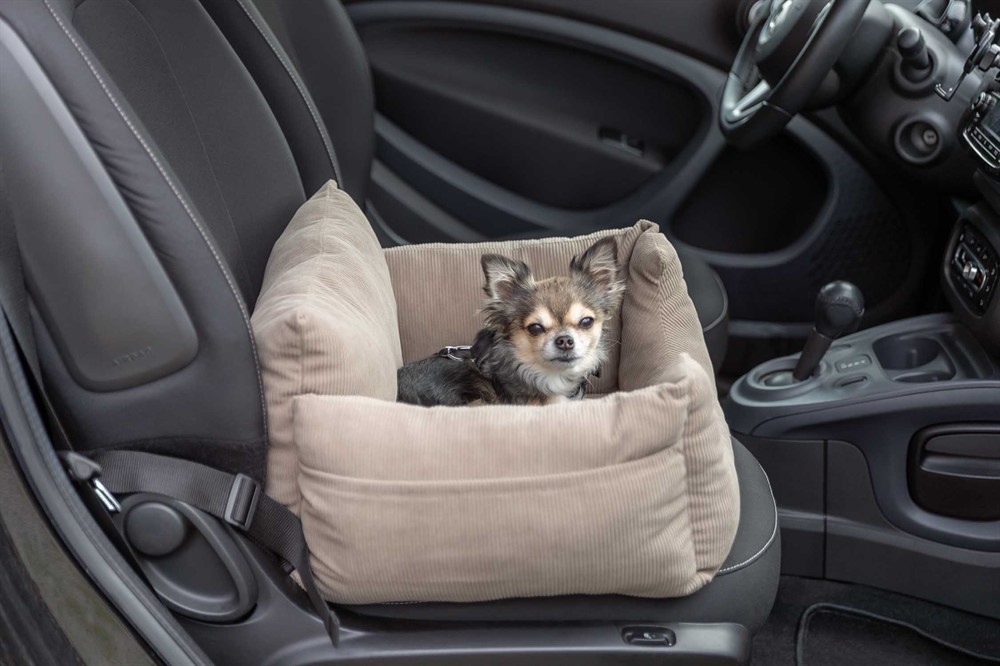 • kan även användas som resebädd• med remmar för att säkra sätet i bilen• öppning för säkerhetsbälte gör det möjligt att spänna fast hunden• avtagbar dyna• mjuk vaddering• med utvändiga fickor• halkfri botten• med manchesterlook (polyester)