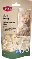85 % kycklingbröst, 15 % ost, frystorkad