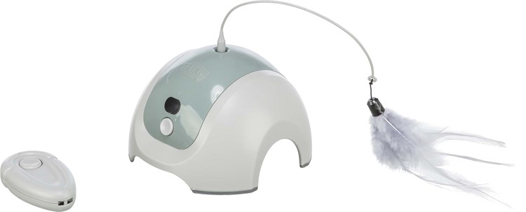 En spännande och fartfylld leksak som sätter fart på kattens jaktinstinkt. Den inbyggda motorn snurrar lekdelen i oförutsägbara rörelser under skyddskåpan, vilket gör att katten vill jaga, fånga och smyga. Med fjärrkontrollen kan du enkelt styra leken och överraska din katt när den minst anar det. Perfekt för både självständig lek och aktiva lekstunder tillsammans.