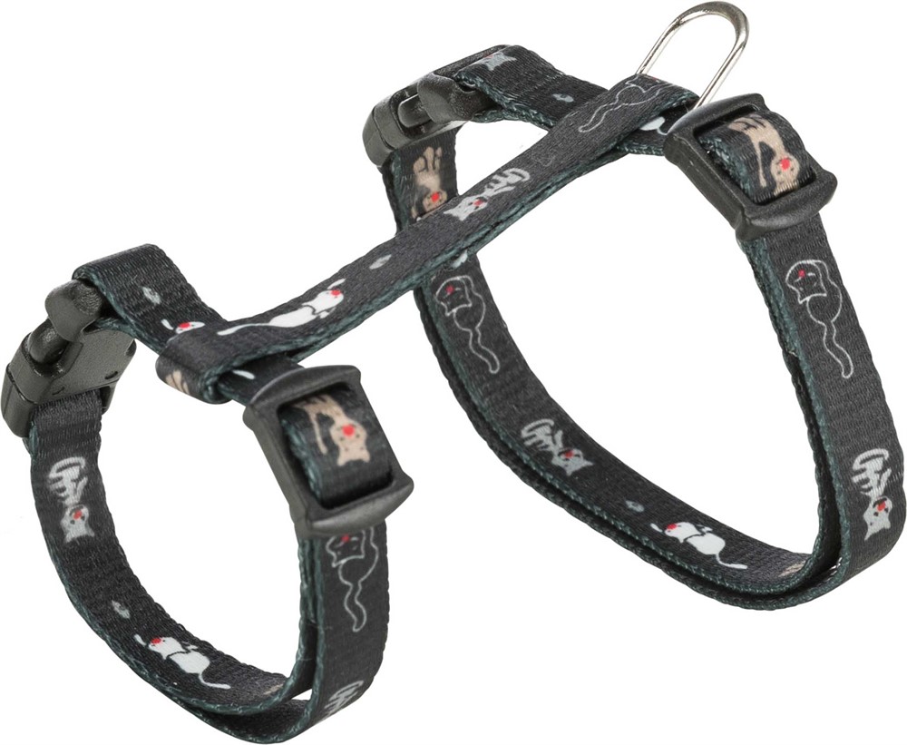 Junior sele med koppel är perfekt för kattungar och mindre katter som vill upptäcka världen tryggt. Den steglöst justerbara passformen ger en mjuk och bekväm känsla, samtidigt som snäppspännen gör selen enkel att ta av och på. Det medföljande kopplet ger stabil kontroll, och de lekfulla kattmotiven skapar en charmig look.