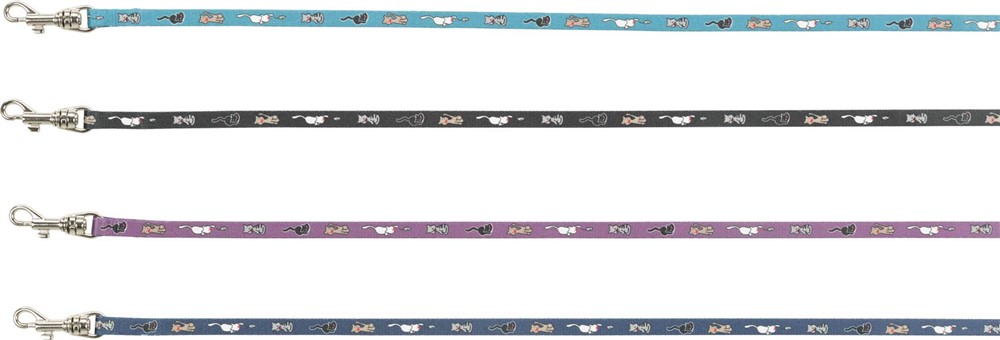 Junior kattsele+koppel, 21-33 cm/8 mm. 120 cm. Kattmotiv, Bl. färger
