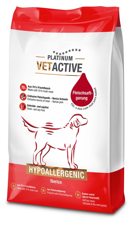 VETACTIVE Hypoallergenic lämpar sig särskilt väl för hundar med tendens till intoleranser och allergier. De noggrant utvalda komponenterna – framför allt den exklusiva köttkällan iberiskt svin och den reducerade ingredienslistan – ger hög tolerans hos många känsliga hundar.