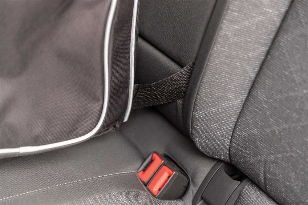 öppning för säkerhetsbälte gör det möjligt att spänna fast hunden